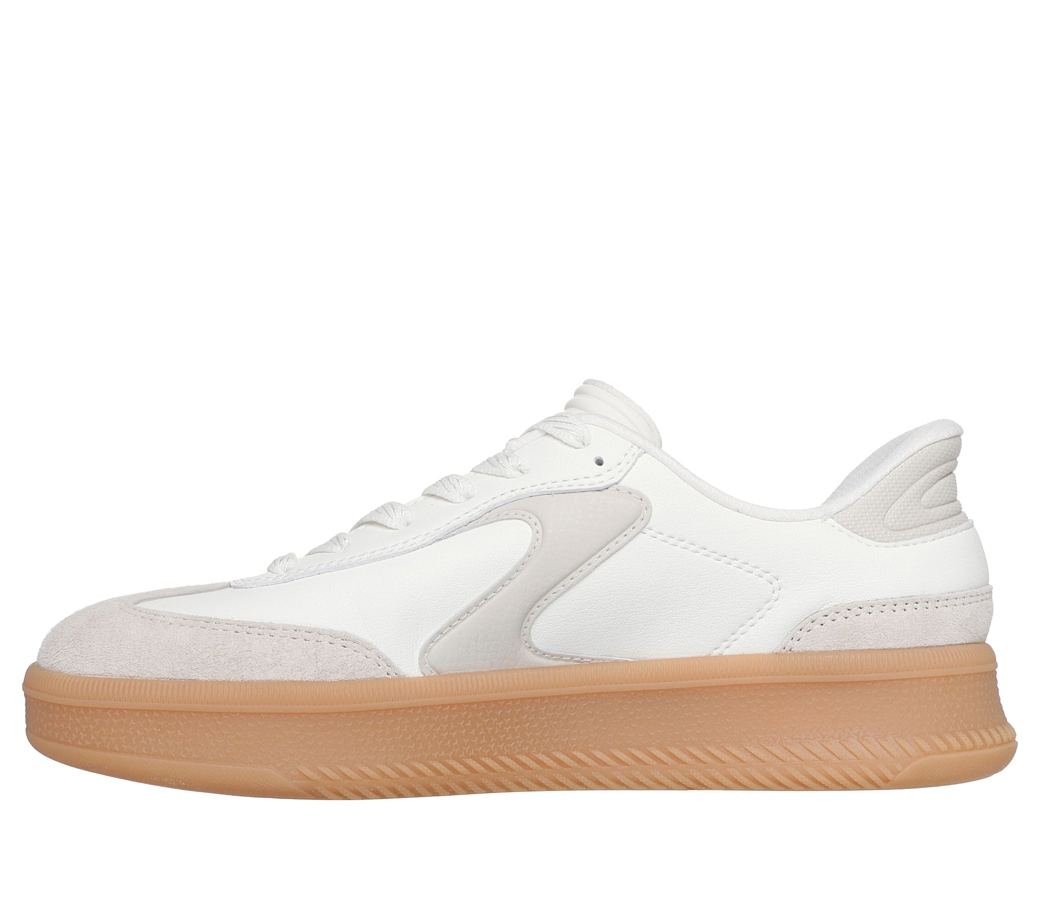 Show off your confident style with iconic tennis styling and classic comfort in the Skechers Hands Free Slip-ins®: Hotshot HI – Lifted Luxe. Designed with our Heel Pillow®, this easy-to-slip-on style features a duraleather upper with pigskin suede accents, a lace-up front, a contrasting "S" logo on the quarter panel, and our signature Skechers Air-Cooled Memory Foam® cushioned insole.