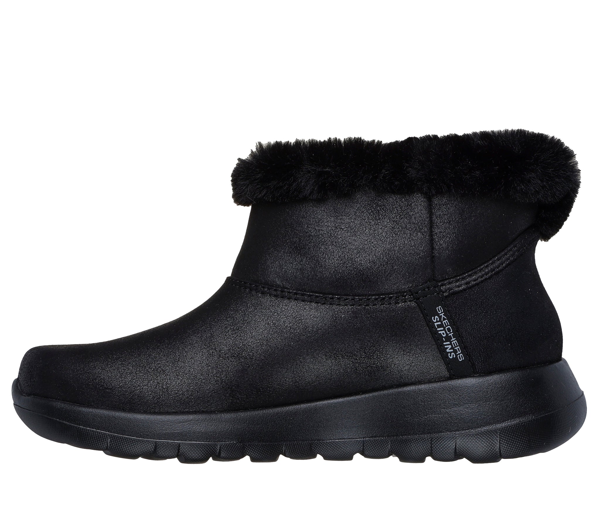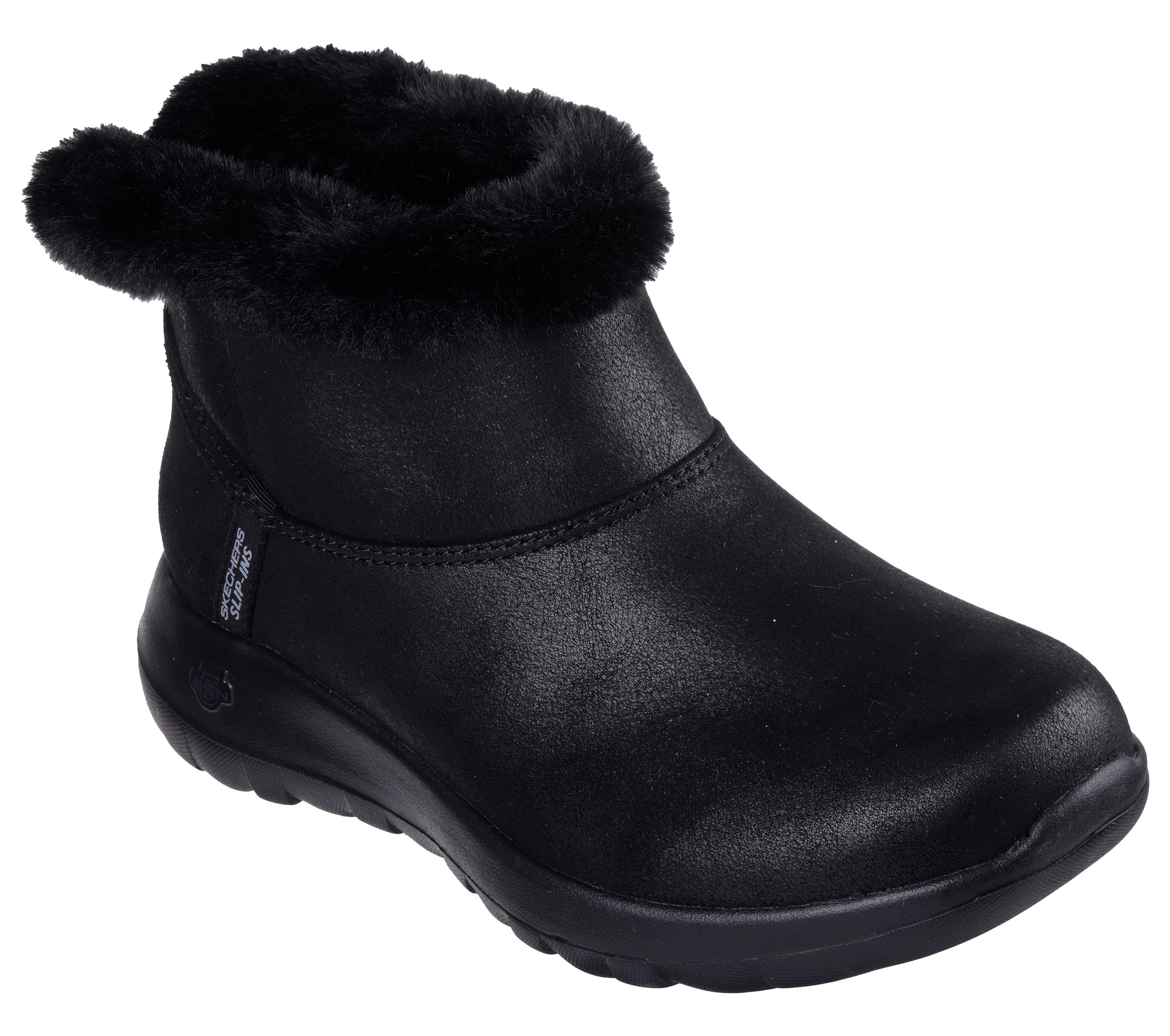 Discover a whole new way to put on your booties with the Skechers Hands Free Slip-ins®: On-the-GO® Joy - Cozy Dream. This casual cold-weather bootie features a 3M® Scotchgard®-treated vegan leather upper with faux fur trim and lining, a Skechers Air-Cooled Memory Foam® footbed, and our innovative Skechers Hands Free Slip-ins® molded heel that lets you simply slip on and go - Just Step in and GO™.
