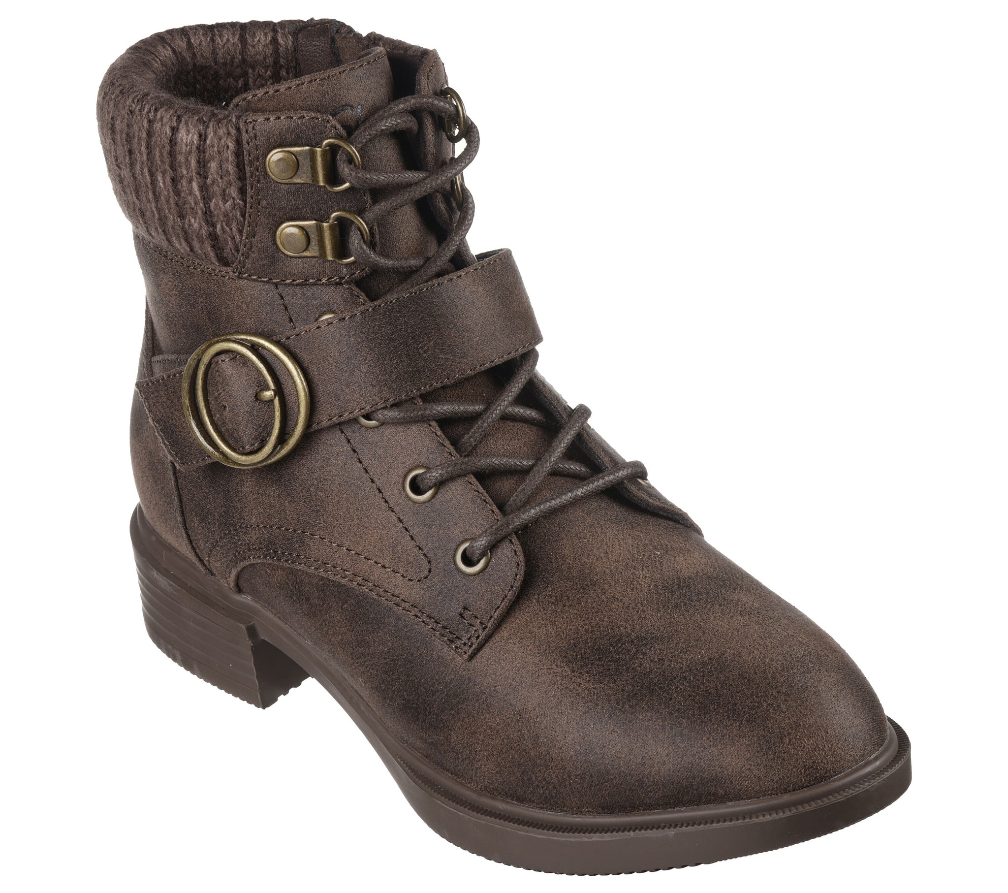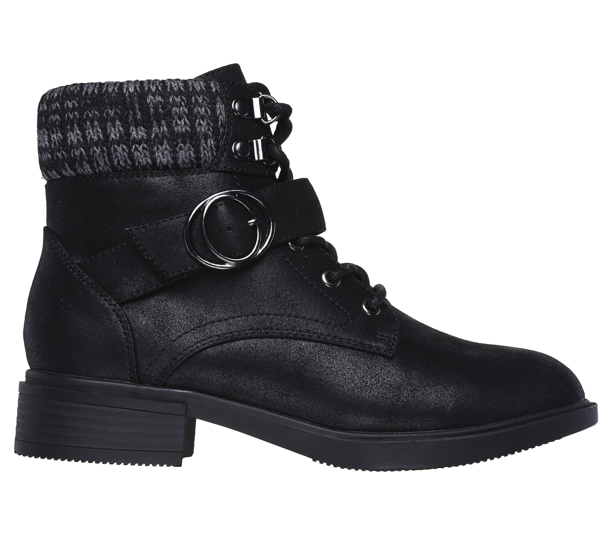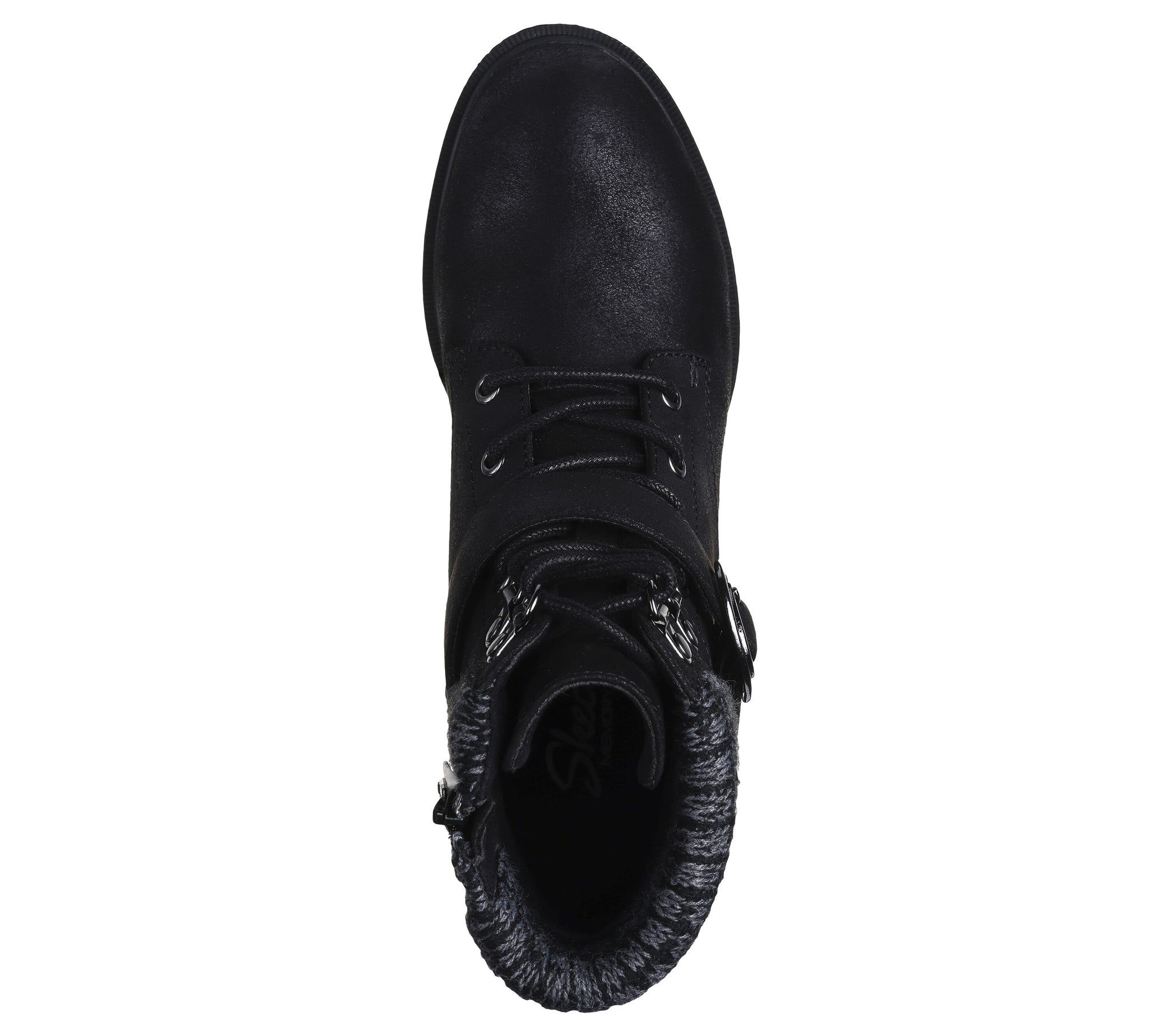 Style and cozy comfort combine in the Skechers Tenley - Dreaming Of Fall. Vegan leather lace-up upper with knit trim, buckle, side zipper and Skechers Air-Cooled Memory Foam® cushioned insole.