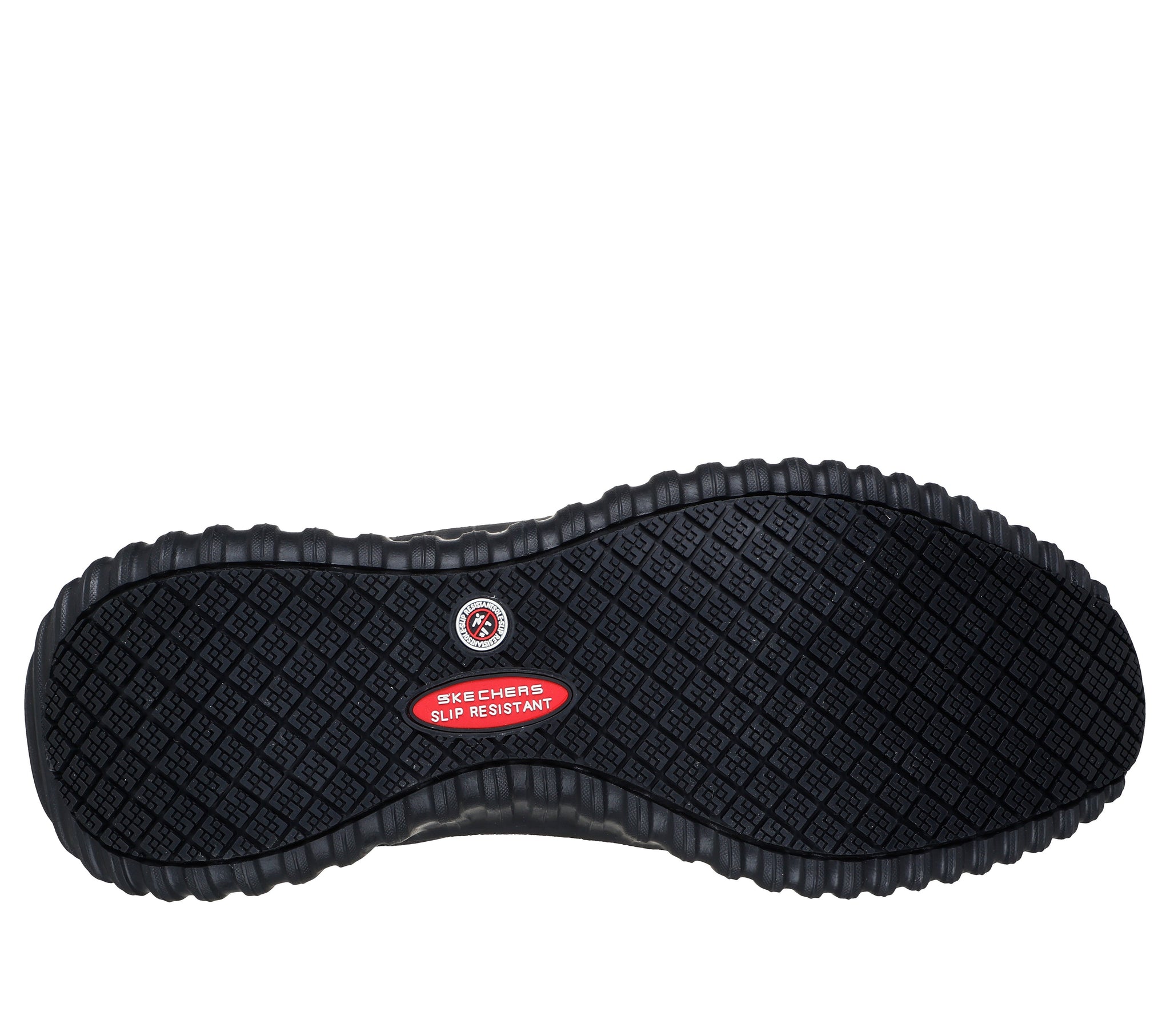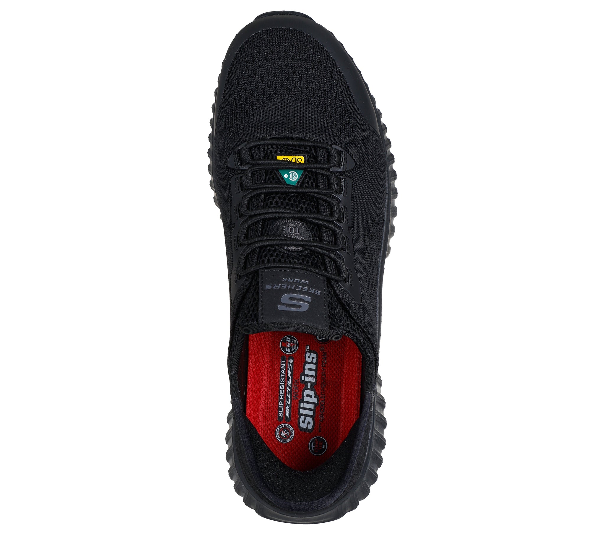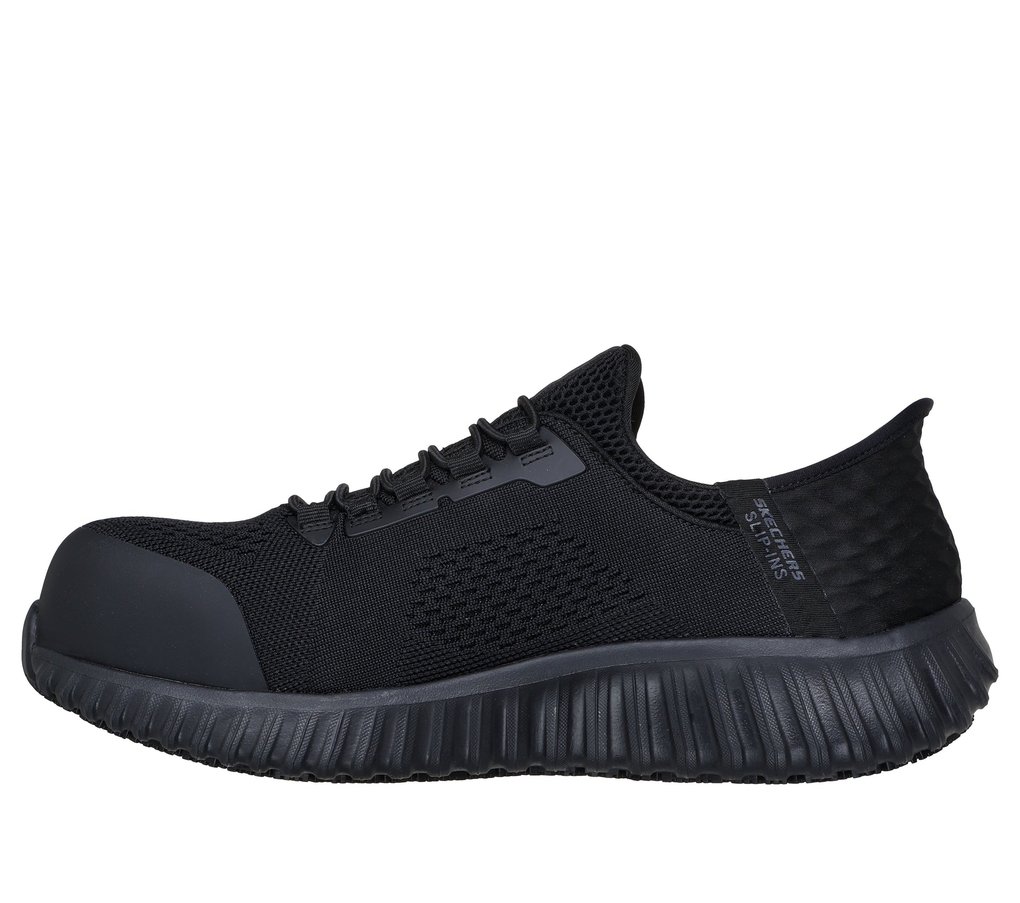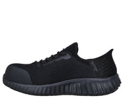 Bring your best to work with the convenience, comfort and safety of the Skechers Hands Free Slip-ins® Work™ : Tilido - Fletchit. Designed with our exclusive Heel Pillow™, this slip-on work model features a technical mesh and synthetic upper with stretch laces, a composite safety toe cap (not CSA approved) and a cushioned Skechers Air-Cooled Memory Foam® insole.