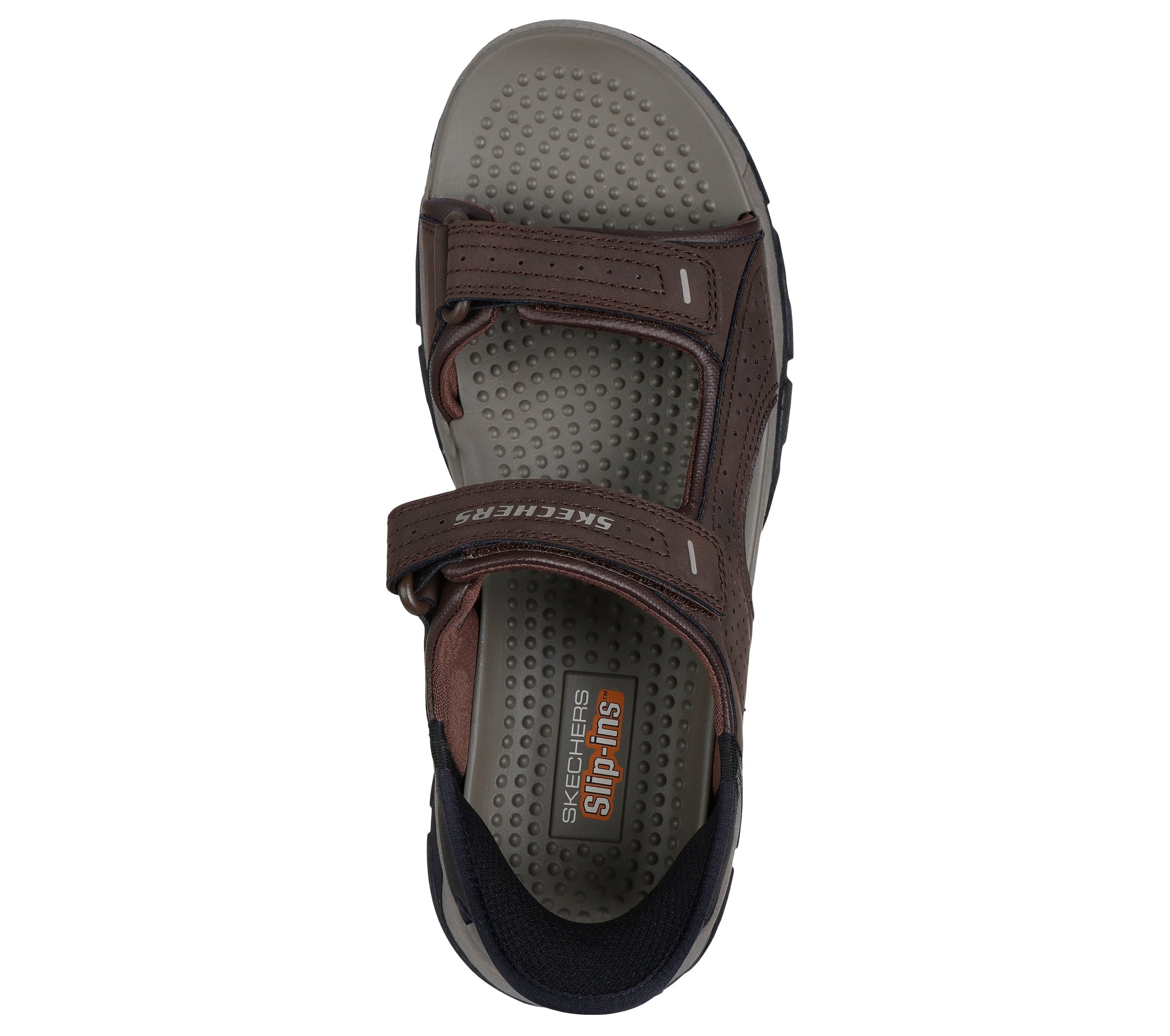 Casual style and comfort come together naturally with Skechers Hands Free Slip-ins® Relaxed Fit®: Tresmen – Reece. Designed with a supportive Heel Pillow®, this sandal features a synthetic upper with adjustable strap closures, a Skechers Hands Free Slip-ins® back heel, and a cushioned insole for optimal comfort.