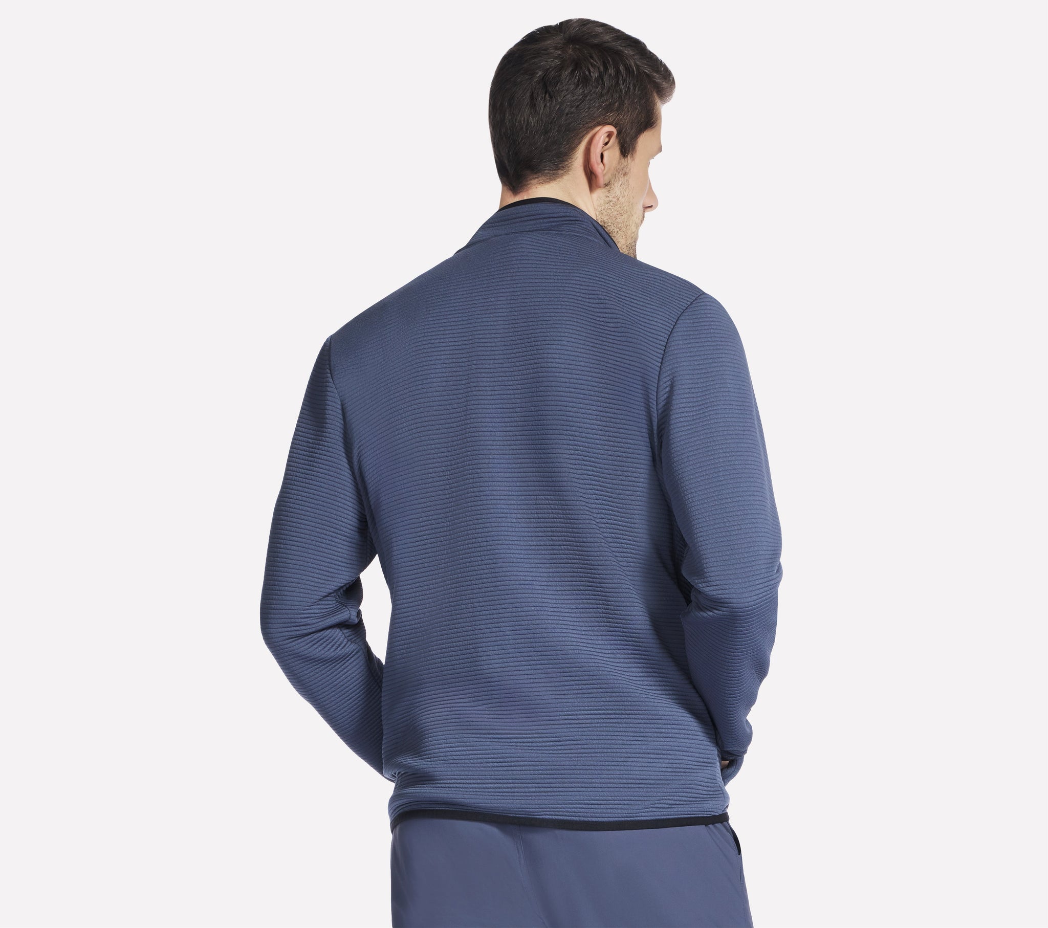 Wrap yourself in softness and warmth with the Skechers Hoodless Hoodie™ Ottoman jacket . This full-zip outerwear features Ottoman Soft Knit jersey fabric made from recycled polyester, two open welt hand pockets, and elastic trim at collar, cuffs and hem.
